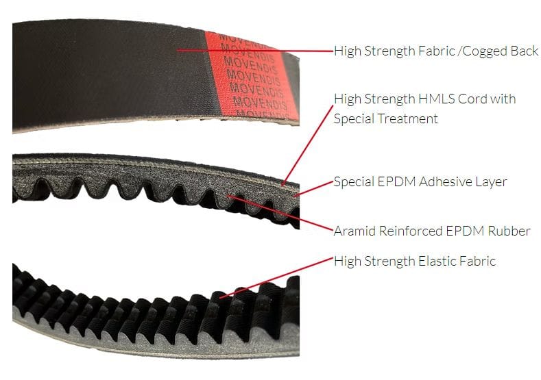 That is why when designing out belts we have done rigourous test to ensure that they offer the best high lateral stiffness and longitudinal flexibility possible. We also made sure that our belts have very good elongation resistance, in order to transfer maximum torque from the drive pulleys to the driven pulleys.